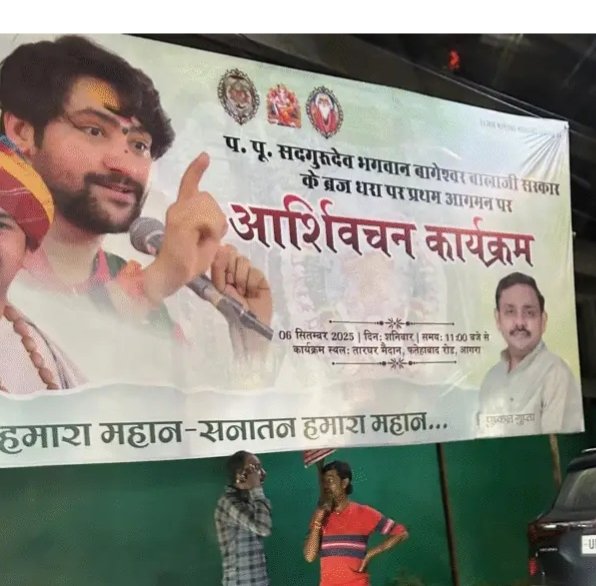 6 सितंबर को मध्य प्रदेश के बागेश्वर धाम पीठ के मठाधीश धीरेंद्र कृष्ण शास्त्री का आगरा में पहली बार आशीर्वचन और सत्संग कार्यक्रम सदर बाजार क्षेत्र के अंतर्गत तारघर मैदान में आयोजित किया जाएगा। उनके आगरा आगमन को लेकर अनुयायियों और श्रद्धालुओं में एक उत्साह और खुशी की लहर है। इस कार्यक्रम में लगभग 30 से 40 हजार लोगों के आने का अनुमान लगाया जा रहा है। आगरा में बागेश्वर धाम महाराज का प्रथम कार्यक्रम होने के कारण लोगों में जिज्ञासा है।