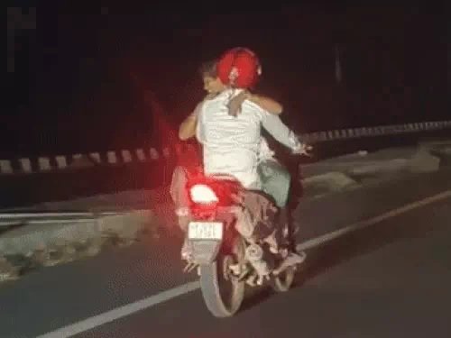 वीडियो में एक युवक अपनी बाइक की टंकी पर युवती को बैठाकर हाईवे पर तेज रफ्तार से बाइक दौड़ाता हुआ नजर आ रहा है।
