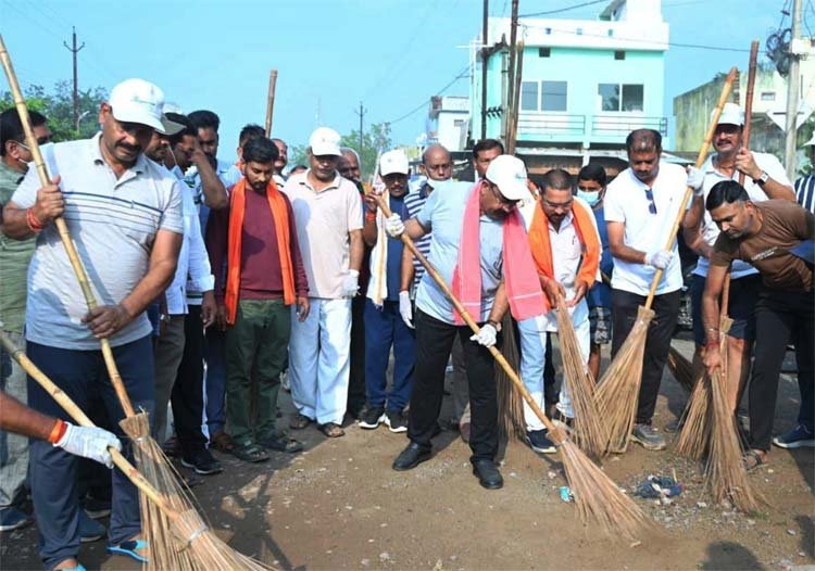 रायपुर, 26 सितंबर । उप मुख्यमंत्री अरुण साव की अगुवाई में आज सेवा पखवाड़ा के तहत लोरमी नगर पालिका में ‘स्वच्छता ही सेवा’ अभियान चलाकर सफाई की गई। इस दौरान लोरमी के महामाया मंदिर से लेकर 50 बिस्तर अस्पताल तक सफाई अभियान चलाया गया। उप मुख्यमंत्री साव के साथ मुंगेली के कलेक्टर कुन्दन कुमार, पुलिस अधीक्षक भोजराम पटेल, जिला पंचायत के सीईओ प्रभाकर पाण्डेय और नगर पालिका के अध्यक्ष सुजीत वर्मा सहित जनप्रतिनिधियों एवं अधिकारियों ने भी श्रमदान किया।