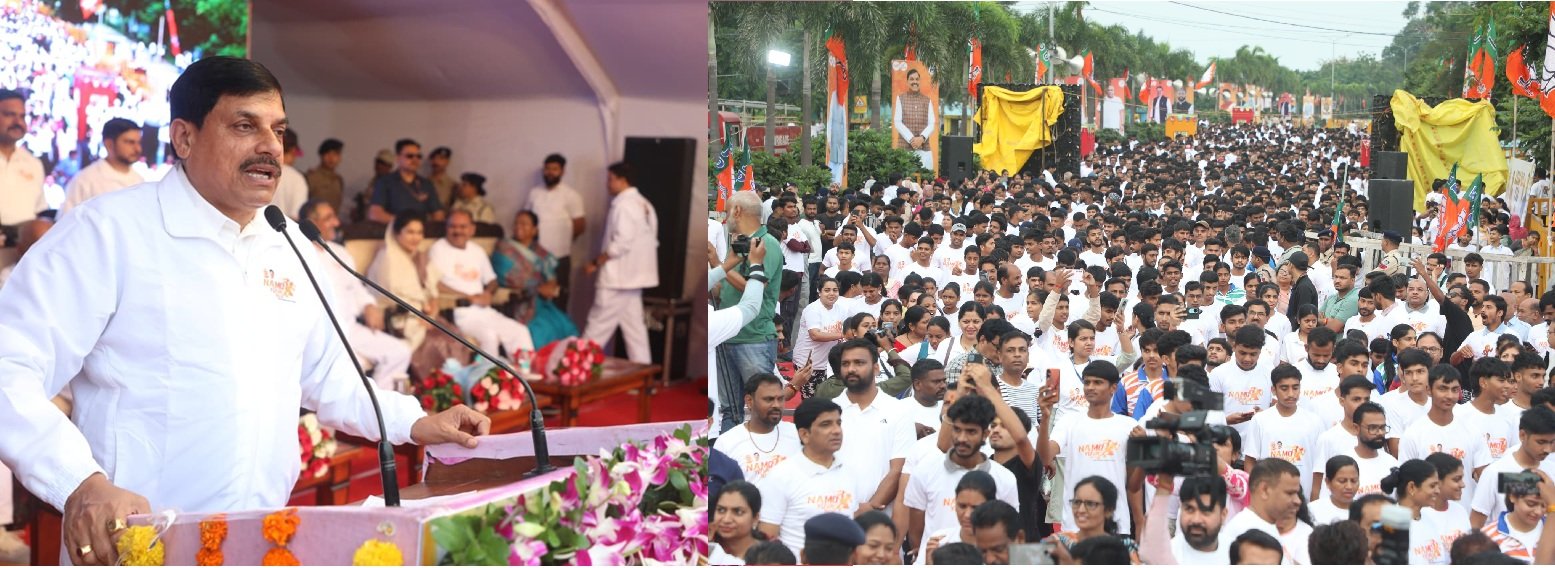 उन्होंने कहा कि पूरे देश में 17 सितम्बर से दो अक्टूबर तक सेवा पखवाड़ा आयोजित किया जा रहा है। इस पखवाड़े के दौरान नमो युवा रन का आयोजन हम सबको देश की सेवा के लिए आगे आने की प्रेरणा देता है।मुख्यमंत्री डॉ यादव ने कार्यक्रम में नमो युवा रन के मोमेंटों (लोगो) का लोकार्पण भी किया। मुख्यमंत्री एवं अन्य अतिथियों ने स्वयं स्पोर्ट्स ट्रेक सूट में मैराथन दौड़ में शिरकत कर हजारों की संख्या में नमो युवा रन में शामिल प्रतिभागियों को शुभकामनाएं दीं और उनका उत्साहवर्धन किया।