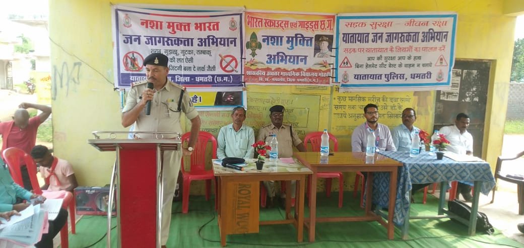 इस अवसर पर शासकीय हाई स्कूल मोहंदी के स्काउट-गाइड छात्रों ने आकर्षक सांस्कृतिक प्रस्तुतियां दीं। गीत, नाटक और नारों के माध्यम से उन्होंने समाज को यह संदेश दिया कि नशा जीवन को बर्बादी की ओर ले जाता है और इससे दूर रहना ही उज्ज्वल भविष्य की कुंजी है। छात्रों की इन प्रस्तुतियों को ग्रामीणों ने सराहा और उत्साहपूर्वक कार्यक्रम में शामिल हुए। पुलिस अधिकारियों ने साइबर क्राइम के बढ़ते मामलों को देखते हुए लोगों को सावधानी बरतने की अपील की। उन्होंने कहा कि किसी भी अज्ञात कॉल, लिंक या संदेश पर विश्वास न करें, ओटीपी, बैंक डिटेल और पासवर्ड किसी को न बताएं। साथ ही किसी भी प्रकार की ठगी होने पर तत्काल साइबर हेल्पलाइन नंबर 1930 पर शिकायत दर्ज कराएं। वहीं यातायात पुलिस ने सड़क सुरक्षा के महत्व पर प्रकाश डालते हुए हेलमेट और सीट बेल्ट का अनिवार्य रूप से उपयोग करने की सलाह दी। उन्होंने ओवरस्पीडिंग और नशे की हालत में वाहन न चलाने की चेतावनी भी दी। कार्यक्रम के अंत में उपस्थित सभी छात्र-छात्राओं और ग्रामीणजनों को नशा मुक्ति की शपथ दिलाई गई। सभी ने संकल्प लिया कि वे न केवल स्वयं नशे से दूर रहेंगे, बल्कि समाज को नशा मुक्त बनाने में भी योगदान देंगे।