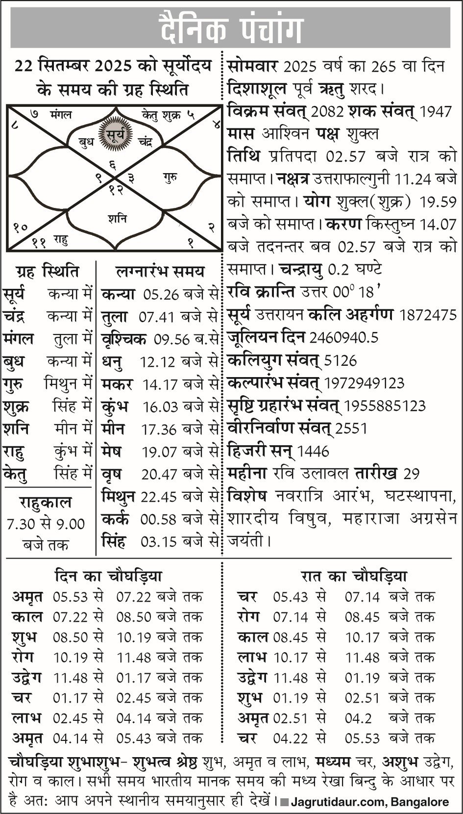 पंचांग : 22 सितंबर, 2025