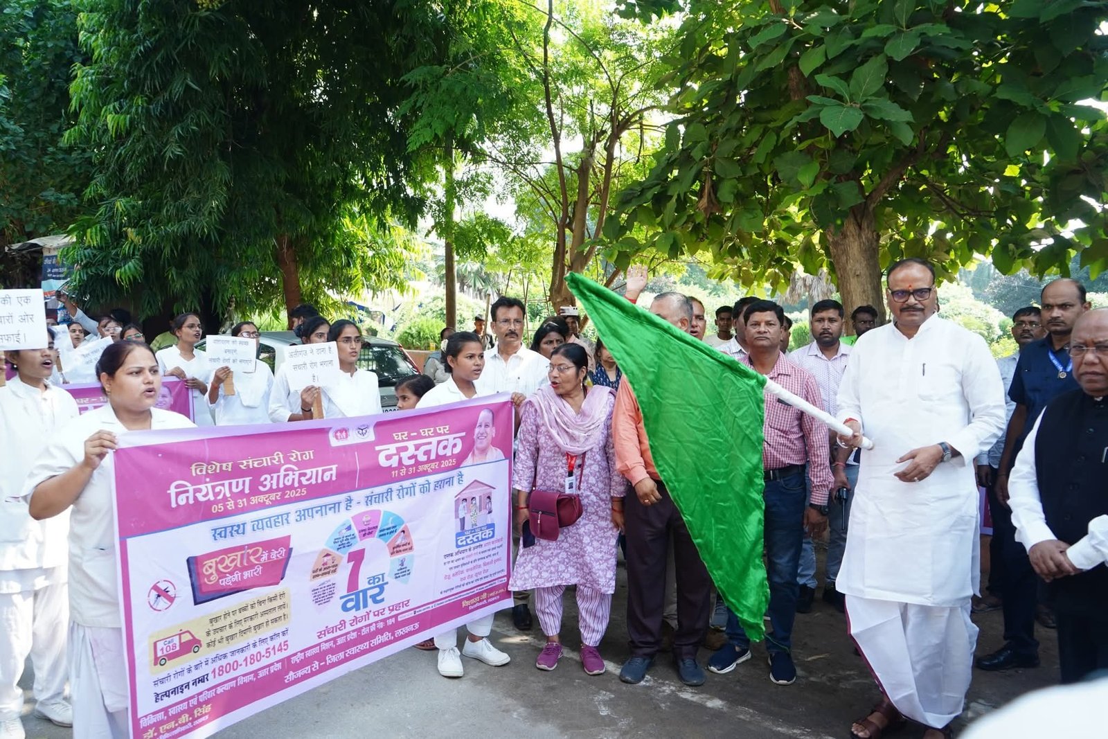 उपचार केे लिए निकाली गई जागरूकता रैली ब्रजेश पाठक ने हरा झंडा दिखाकर रवाना किया।
