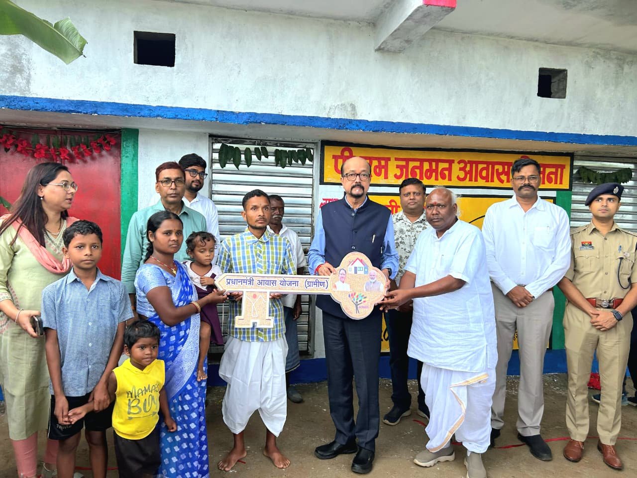 राज्यपाल ने फीता काटकर हितग्राही काे नवनिर्मित आवास में गृह प्रवेश कराया और उन्होंने परिवार के सदस्यों को उनके नए आवास एवं उज्जवल भविष्य के लिए बधाई एवं शुभकामनाएं दीं। राज्यपाल रमेन डेका ने हितग्राही रामकुमार और उनके परिवार से आत्मीयता से बातचीत की। उन्होंने परिवार की आजीविका, बच्चों की पढ़ाई और योजना से हुए बदलावों के बारे में जानकारी ली।