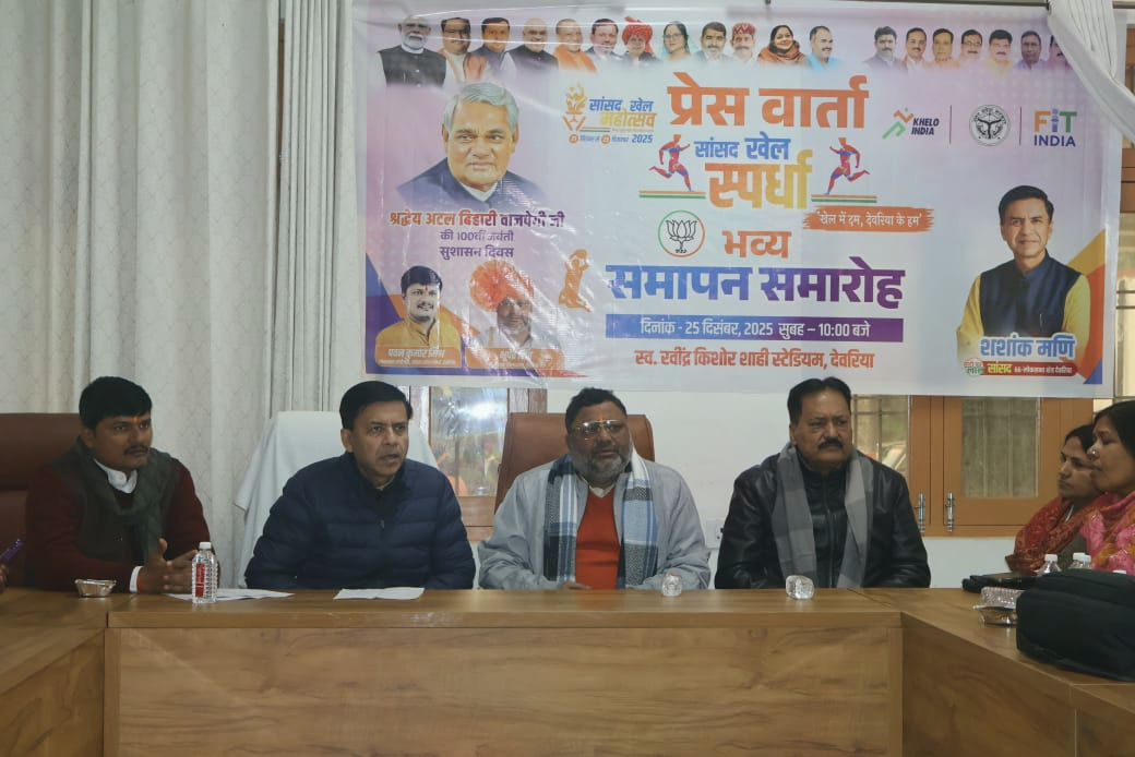 बैठक को सम्बोधित करते हुए सदर सांसद शशांक मणि ने कहा कि प्रधानमंत्री नरेंद्र मोदी के नेतृत्व में पूरे देश मे खेल और खिलाड़ियों को प्रोत्साहित करने के लिए सांसद खेल स्पर्धा का आयोजन किया जा रहा है। गुरुवार को जिला स्टेडियम देवरिया में सांसद खेल स्पर्धा का आयोजन होने जा रहा है। कल ही समापन होगा और विजेता खिलाड़ियों को पुरस्कृत किया जाएगा।