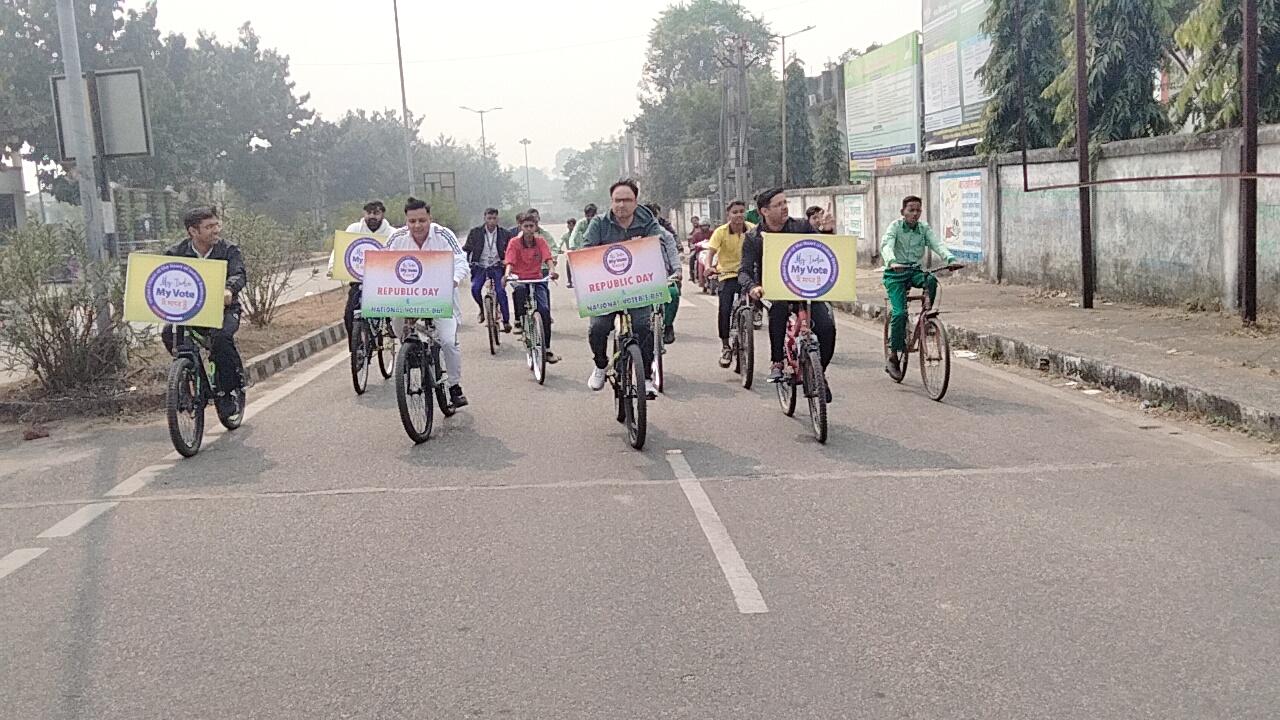 रामगढ़, 25 जनवरी । राष्ट्रीय मतदाता दिवस और गणतंत्र दिवस के अवसर पर जिले में मतदाता जागरूकता को बढ़ावा देने के उद्देश्य से संडे ऑन साइकिल कार्यक्रम का आयोजन किया गया। कार्यक्रम का आयोजन माई इंडिया, माई वोट विषय के अंतर्गत किया गया, जिसमें जिले के अधिकारियों, युवाओं एवं आम नागरिकों ने उत्साहपूर्वक भाग लिया।