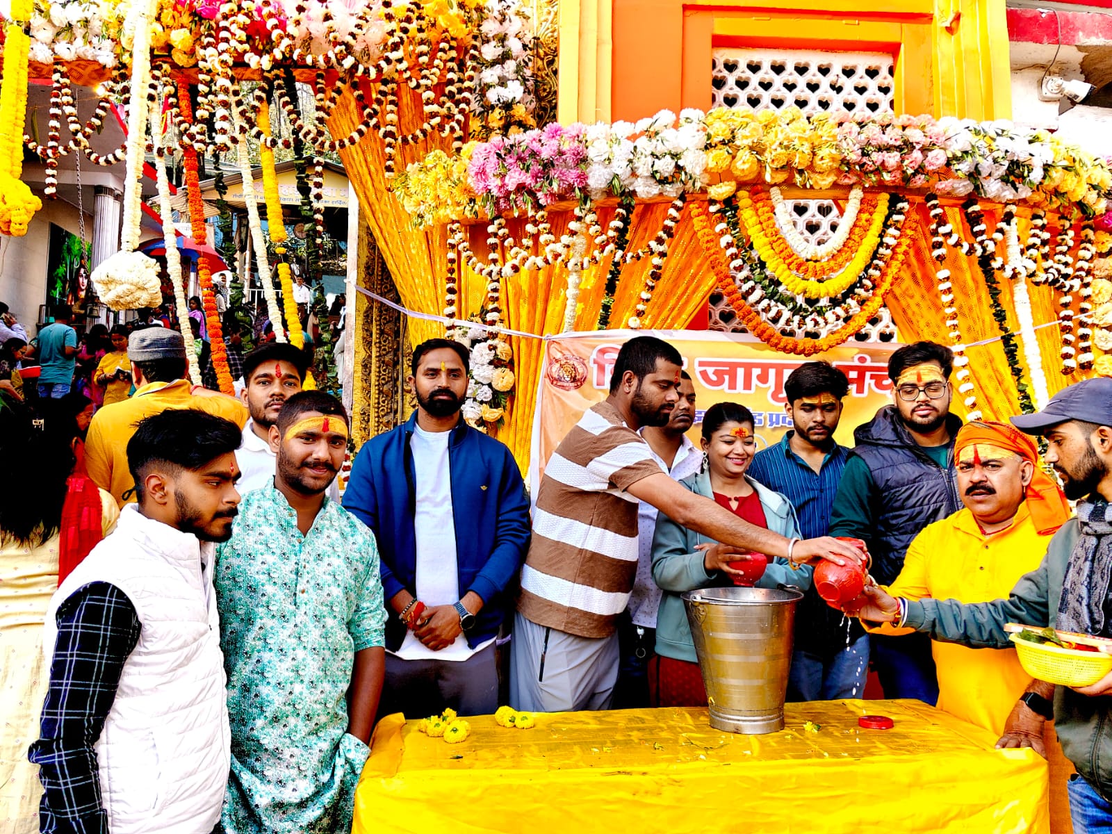 मंच के स्वयंसेवक सुबह चार बजे से ही सेवा कार्य में जुट गए थे। वे श्रद्धालुओं को कतारबद्ध दर्शन में सहयोग, पूजन सामग्री वितरण और अन्य आवश्यक सहायता प्रदान कर रहे थे। भक्तों को किसी भी प्रकार की कठिनाई न हो, इसके लिए पूरी सतर्कता और समन्वय के साथ व्यवस्था संभाली जा रही थी।