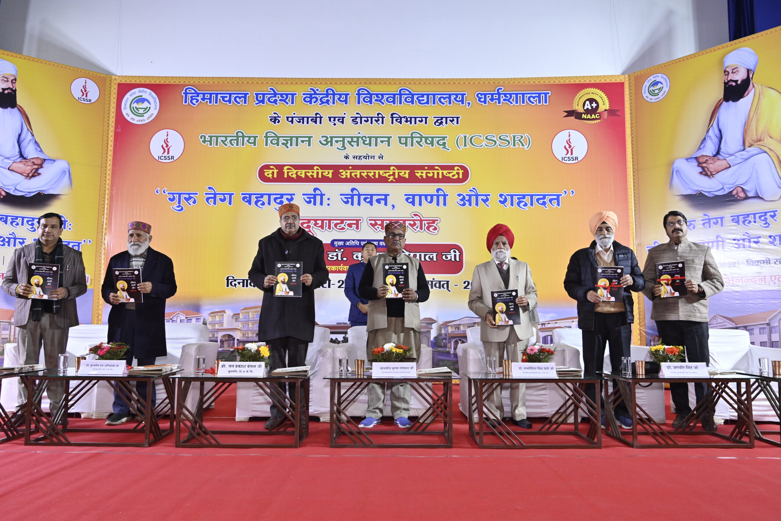 धर्मशाला, 03 फ़रवरी । हिमाचल प्रदेश केंद्रीय विश्वविद्यालय, धर्मशाला के पंजाबी एवं डोगरी विभाग द्वारा भारतीय सामाजिक विज्ञान अनुसंधान परिषद के सहयोग से श्री गुरु तेग बहादुर की 350वीं शहादत वर्षगांठ के उपलक्ष्य में श्री गुरु तेग बहादुर जी : जीवन, वाणी और शहादत विषयक दो-दिवसीय अंतरराष्ट्रीय संगोष्ठी का शुभारंभ हुआ। उद्घाटन सत्र में डा. कृष्णगोपाल सह-सरकार्यवाह, राष्ट्रीय स्वयंसेवक संघ बतौर मुख्य अतिथि एवं मुख्य वक्ता के रूप में उपस्थित रहे। वहीं इस मौके पर पद्मश्री आचार्य हरमोहिंदर सिंह बेदी, कुलाधिपति, हिमाचल प्रदेश केंद्रीय विश्वविद्यालय, धर्मशाला द्वारा कुलाधिपति, पंजाब केंद्रीय विश्वविद्यालय, बठिंडा ने कार्यक्रम की अध्यक्षता की।